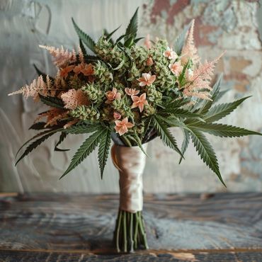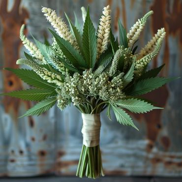 A bit of international flare in this one! Highlight foliage is the Italian Ruscus imported directly from Italy. Mixed with the California legend Seeded Eucalyptus and amazing hemp leaves!